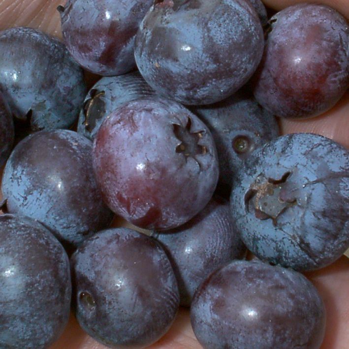 Reife: Ende Juli, Frucht: mittel-gross, hellblau, sehr fest, mild aromatisch, saure Böden, höherer Ertrag durch mehrere Sorten.