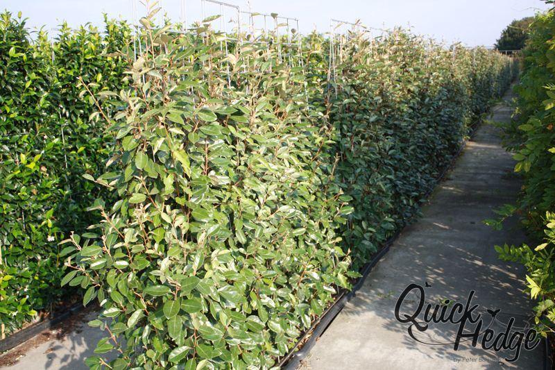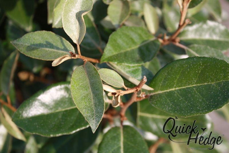 Blätter: Wintergrün, in milden Gebieten immergrün, wechselständig, elliptisch, 6 bis 10 cm lang, lederartig, glänzend dunkelgrün, unterseits silbergrau mit braunen oder schwarzen Punkten.