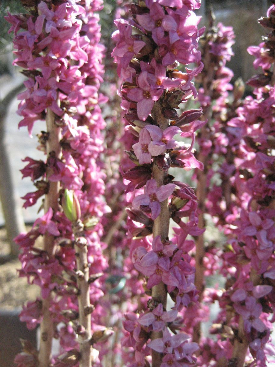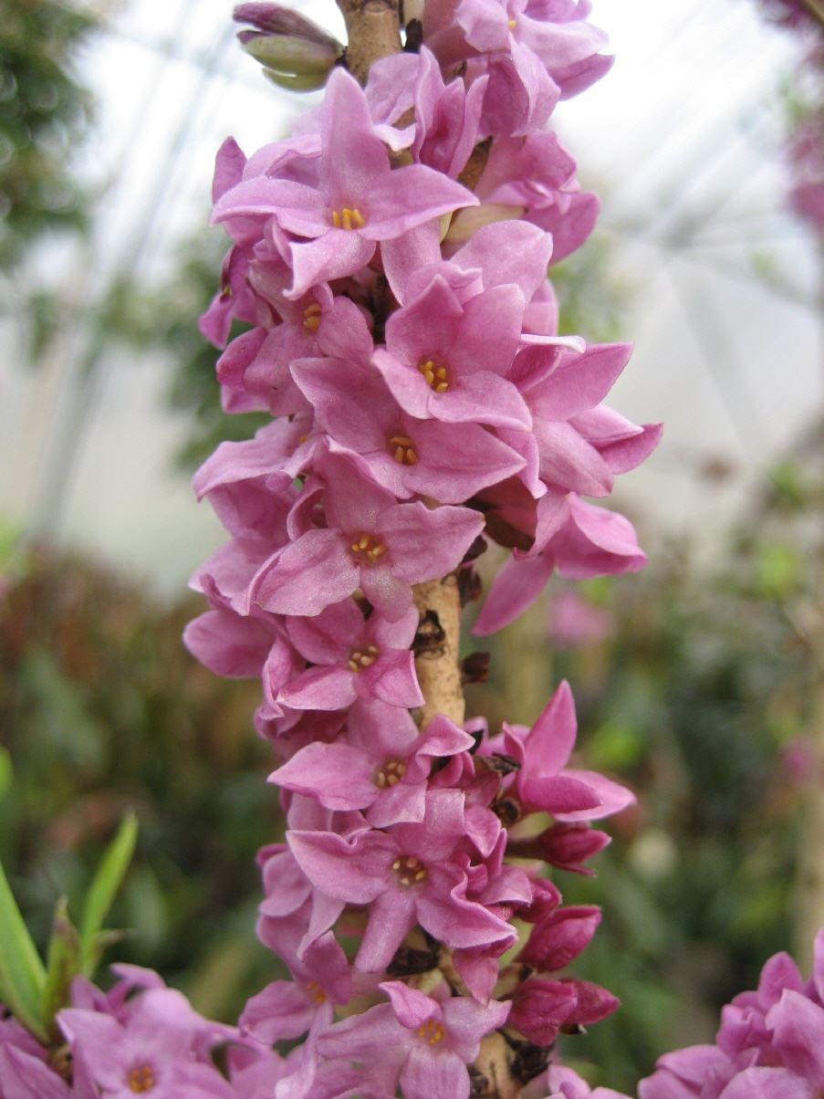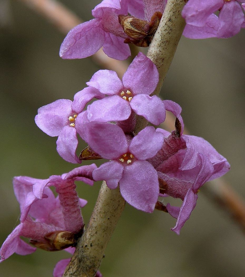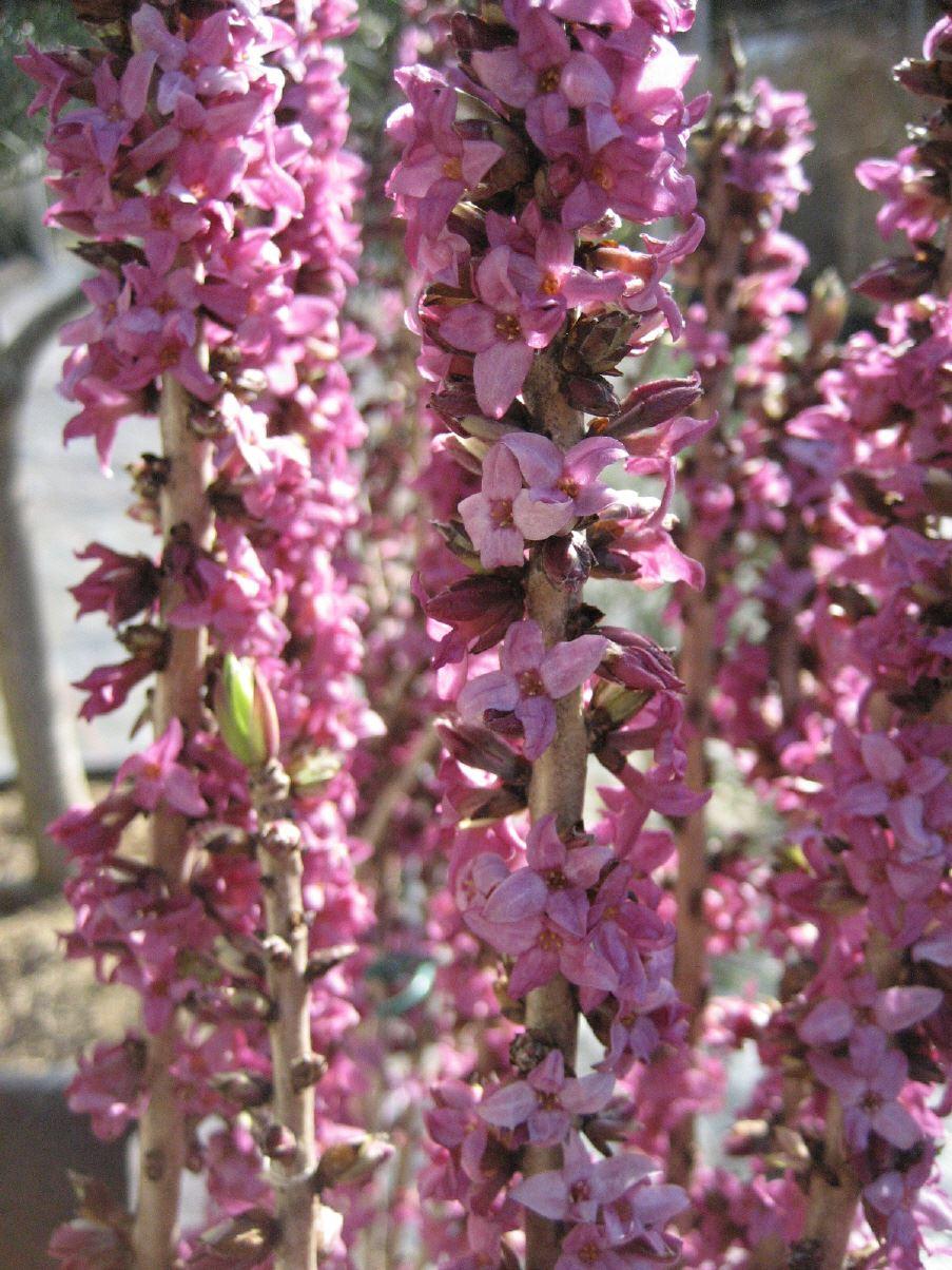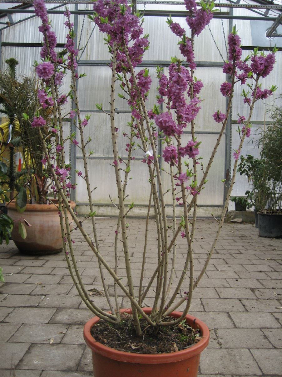 1,2m, Blüte: dunkelrot, März-April, duftend, reichblühend, kalkliebend, alle Pflanzenteile sind sehr giftig.