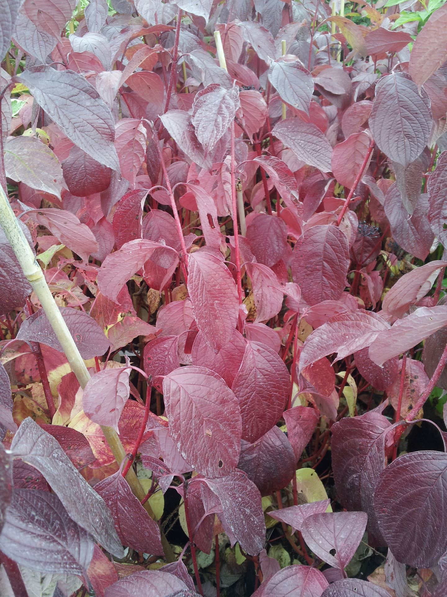 2 - 3 m, Blatt: grün, rote Herbstfärbung, Rinde im Winter auffallend korallenrot.