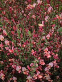 Edel-Ginster 1,5-2m stark Blüte:rubinrot-gelb IV-V Triebe überhängend.