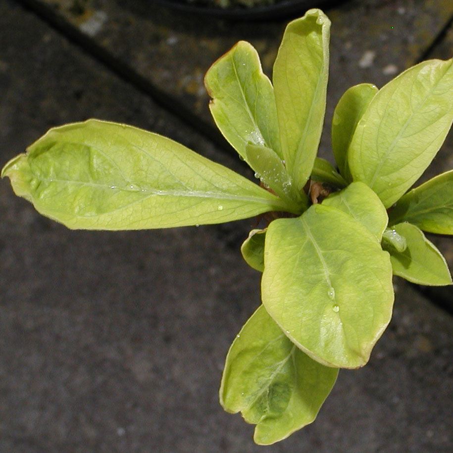 Sommergrüner Strauch. Höhe und Breite ca. 1,5 m. Längliches dunkelgrünes Laub. Kleine, duftende hellgelbe Blüten. Zum Ende des Winters und im zeitigen Frühjahr. Geschützter und sonniger Standort. Benötigt nährstoffreichen Boden.