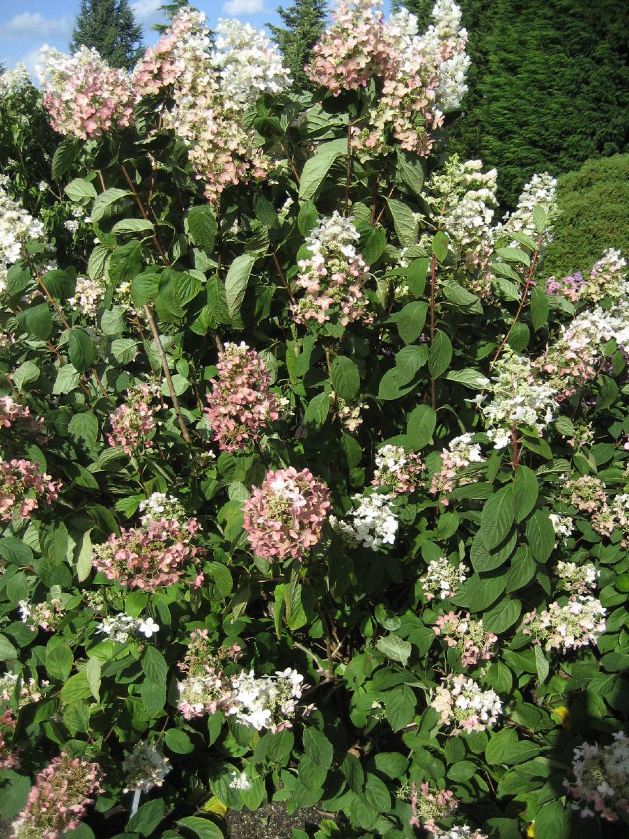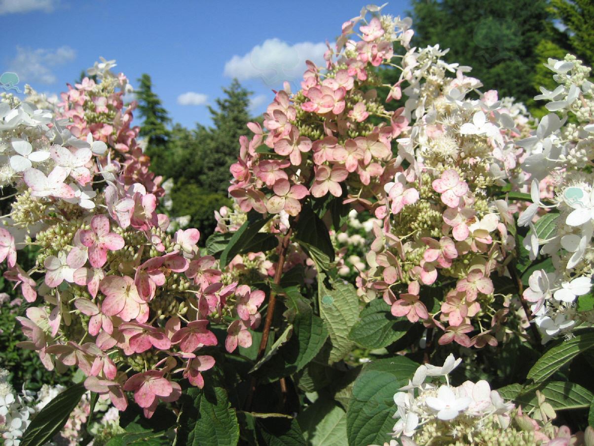 Mittelgrosser Strauch, welcher in ausgewachsenem Zustand 200-250cm wird. Diese Sorte wächst mittelstark. Wegen seinen Blüten wird der Straun angepflanzt. Die Farbe der Blätter sind dunkelgrün. Die Blüte ist weiss bis rosa pink. Die Blütezeit dauert von Juli bis September.