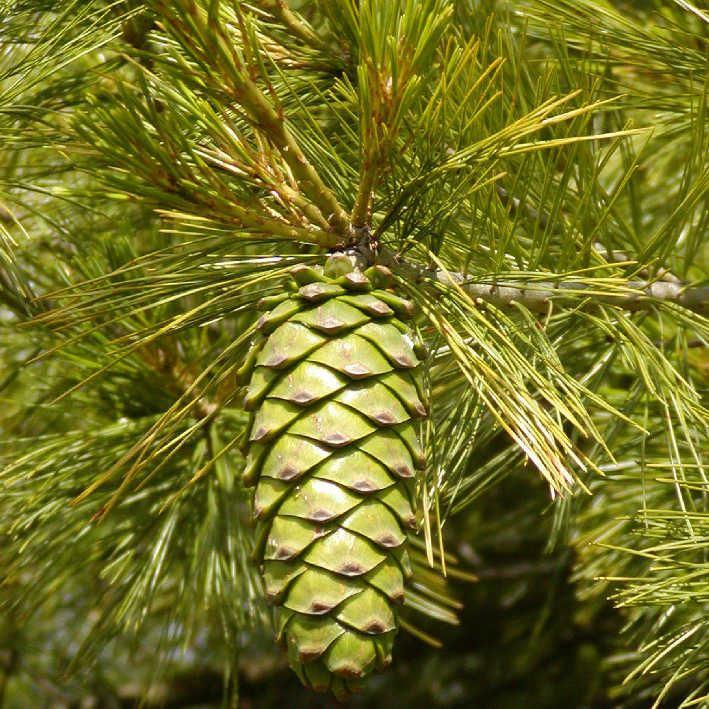 Pinus attenuata Konischer Baum mit aufsteigenden Asten, glatter, grauer im Alter rissiger und schuppiger Borke, grünbraunen Sprossen und harzigen, schmal spindelförmigen Knospen. Die steifen, 8-18 cm langen, graugrünen Nadeln stehen zu dritt an Kurztrieben. Die eiförmig-konischen, gelbbraunen, weiblichen Zapfen sind 9-20 cm lang, außen leicht aufgetrieben und können bis zu 20 Jahre auf der Pflanze verbleiben. Höhe bis 25 m, breite 6-8 m. N-Amerika (Oregon bis Baja California).