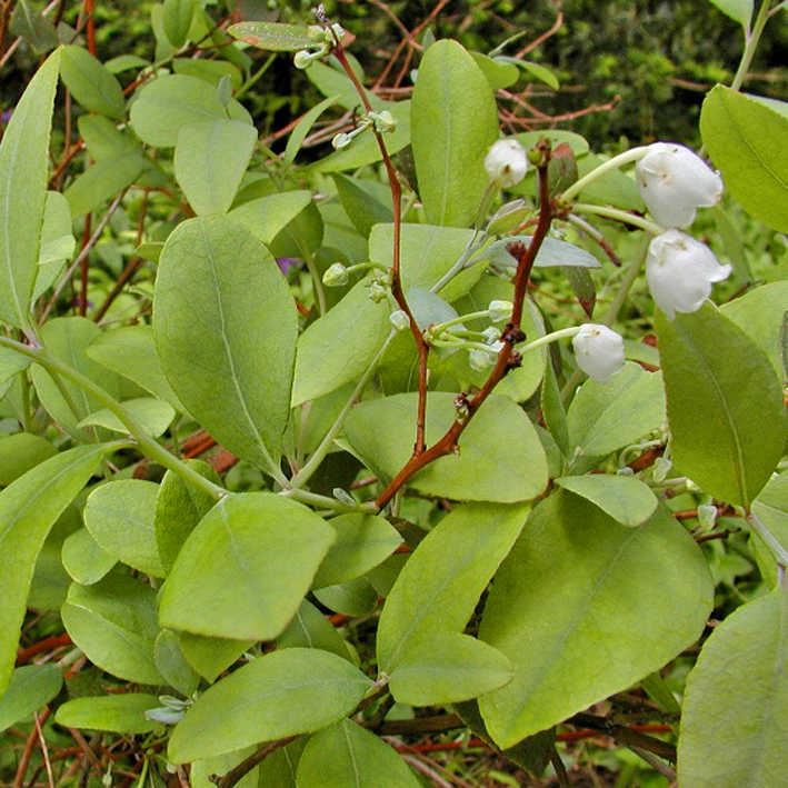 Halbwintergrüner Strauch bis ca. 7 cm hoch. Auffallend blau-weiss bereiftes Laub. Glockenförmige, rahmweisse Blüten im Mai und Juni. Sonnig bis halbschattig. Gedeiht auf humosen, leicht saurem Gart...