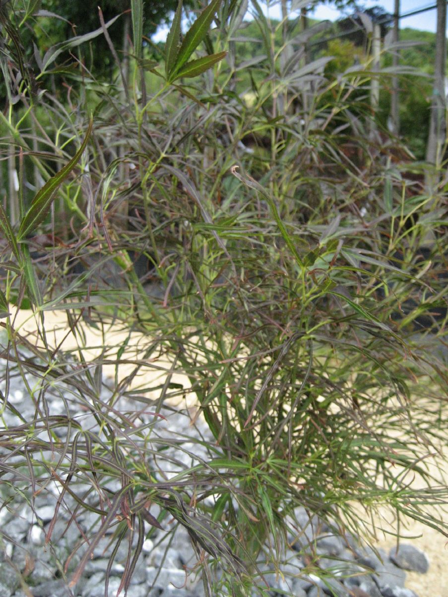 Langsam wachsender Strauch mit einem aufrechten Wuchs. Maximale Höhe 2 m. Das tief eingeschnittene Blatt ist dunkelbraunrot und die Herbstfärbung ist rot. Junges Laub ist tiefrot. Sonne und Halbschatten.