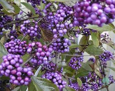 Die violetten, kugeligen, kleinen Früchte erinnern stark an die aus Kindertagen bekannten Liebesperlen, so dass die etwa mannshohe Callicarpa manchmal auch sehr treffend "Liebesperlenstrauch" genannt wird.