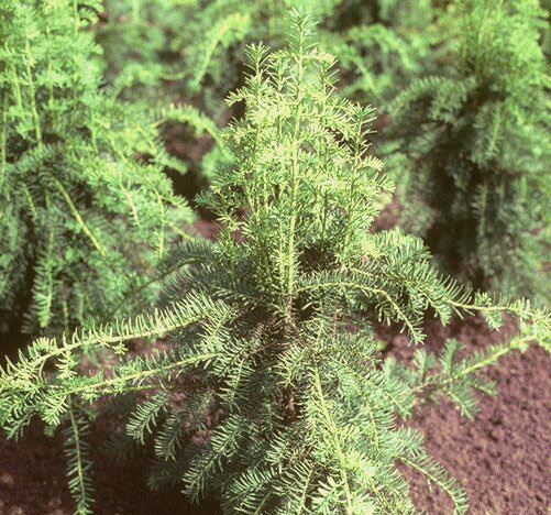 6-8m schwach Nadel:dunkelgrün breitbuschig, Spitzen überhängend Frucht:zahlreich, giftig sehr dekorativ für Einzelstand
